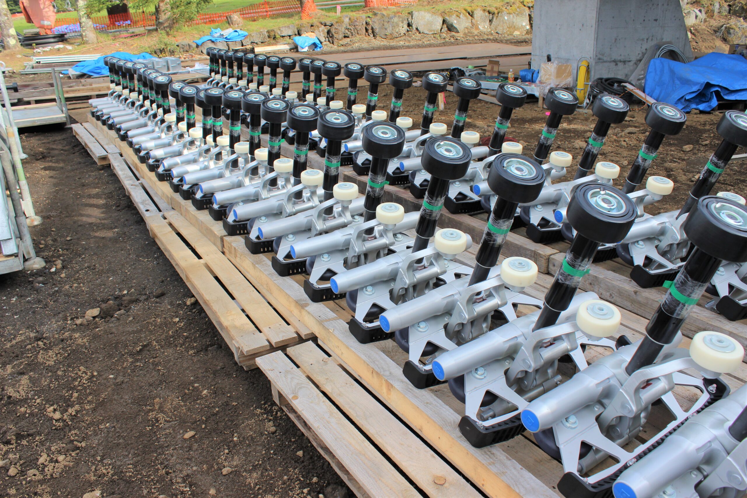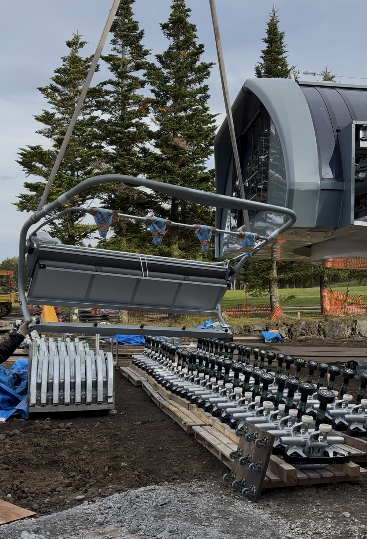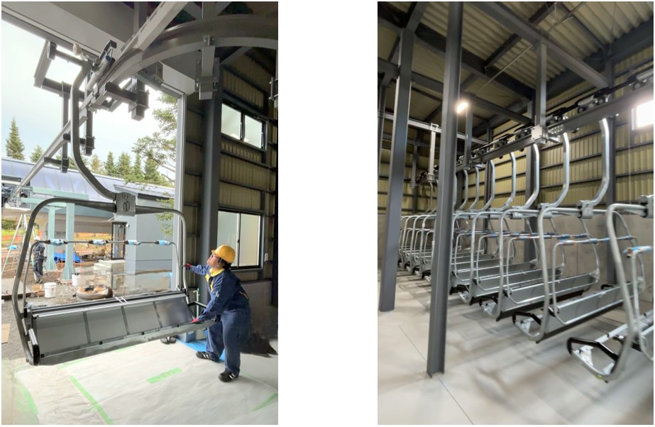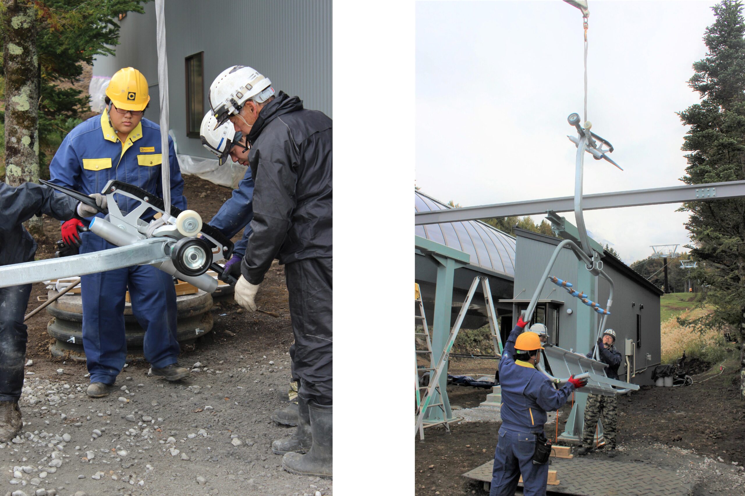 工事は終盤を迎えており、当日は「搬器組み立て」の作業中でしたので、今回はその様子をみなさんにご紹介します。