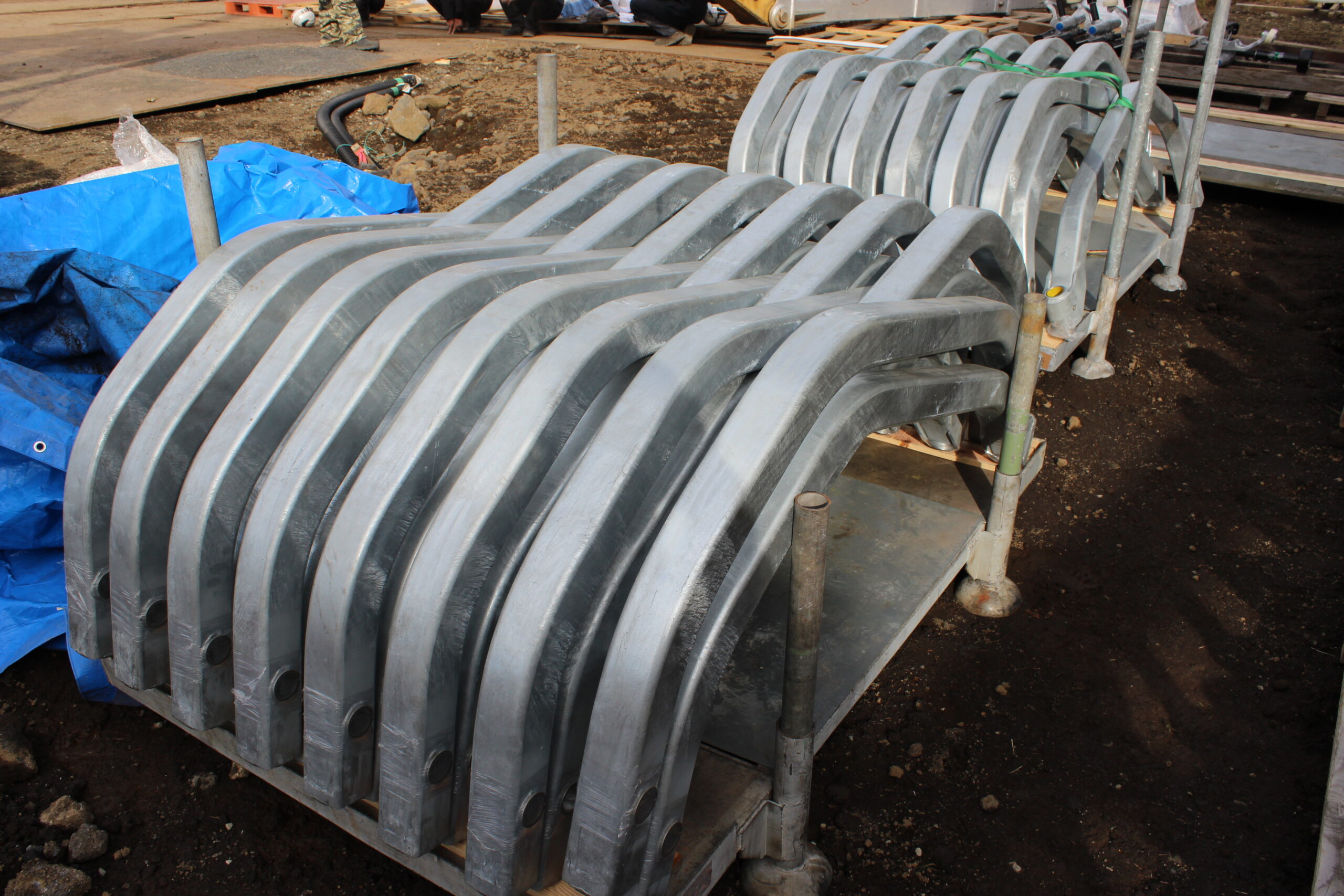 チェア→懸垂部→握索装置の順で組み立てていきます。重量があるため、クレーンを用いて慎重に作業を行います。